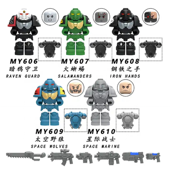 Jeu de MY606-610 SpaceMarines Space Wolves Iron Hands Raven Guard Salamandres Mini Collect Building Blocks Plastic Kids Gift Toys